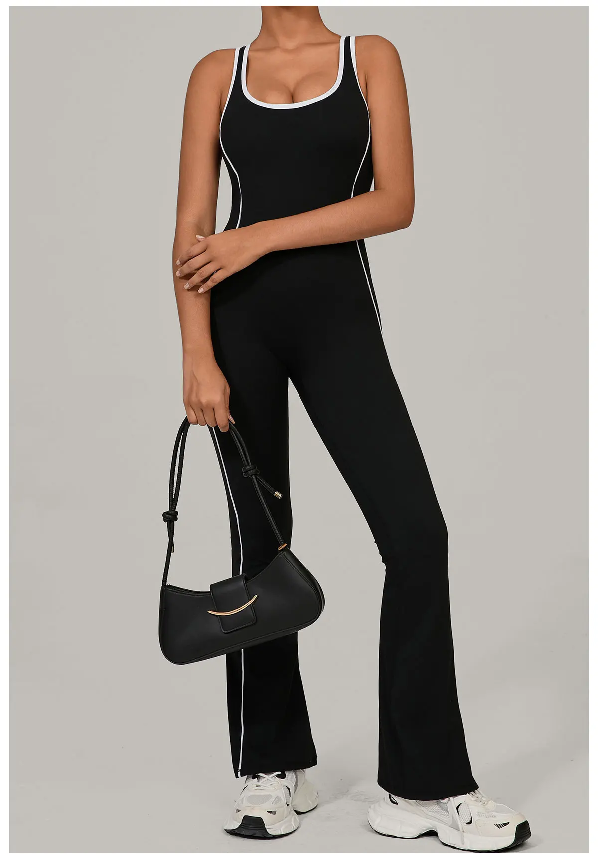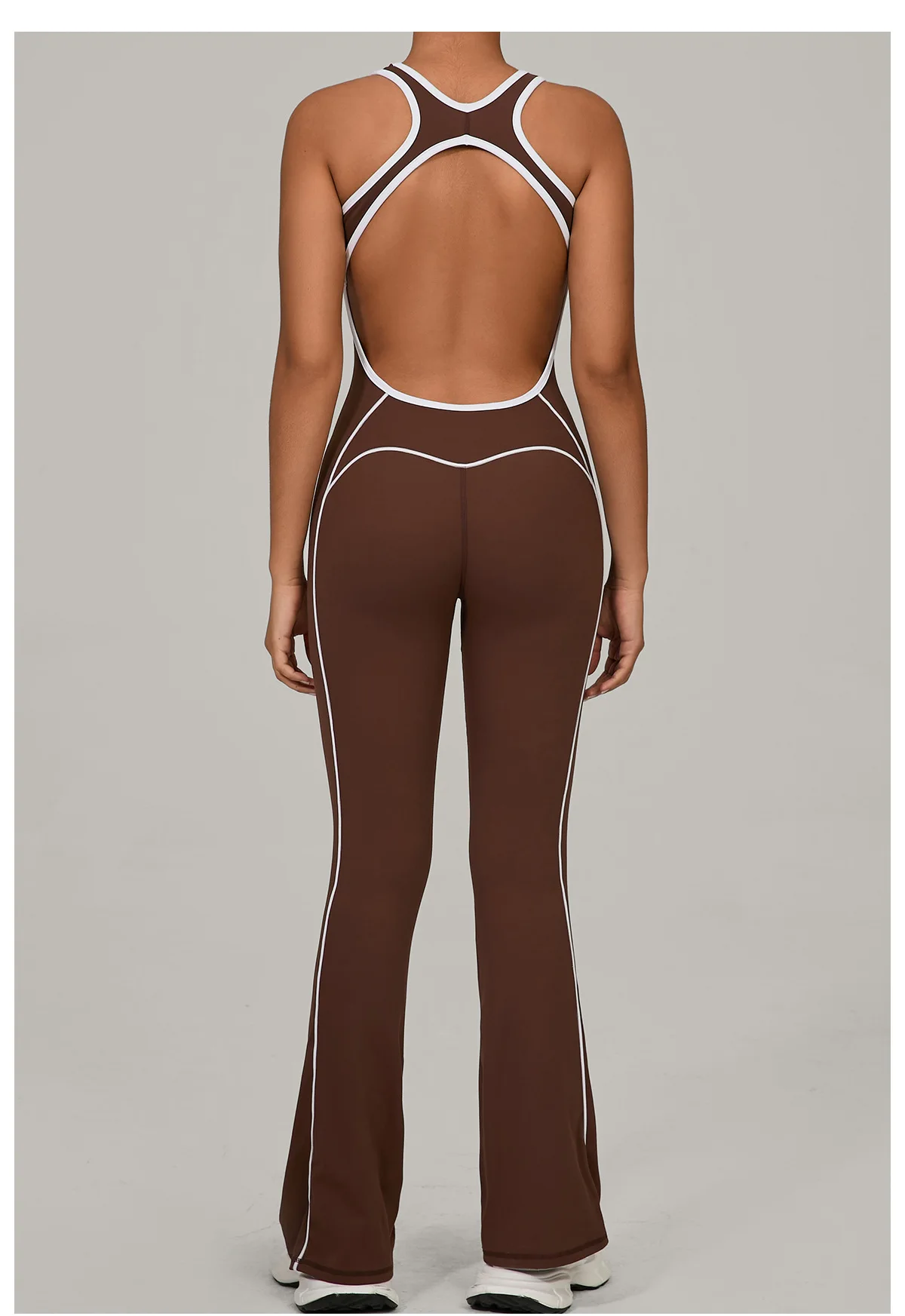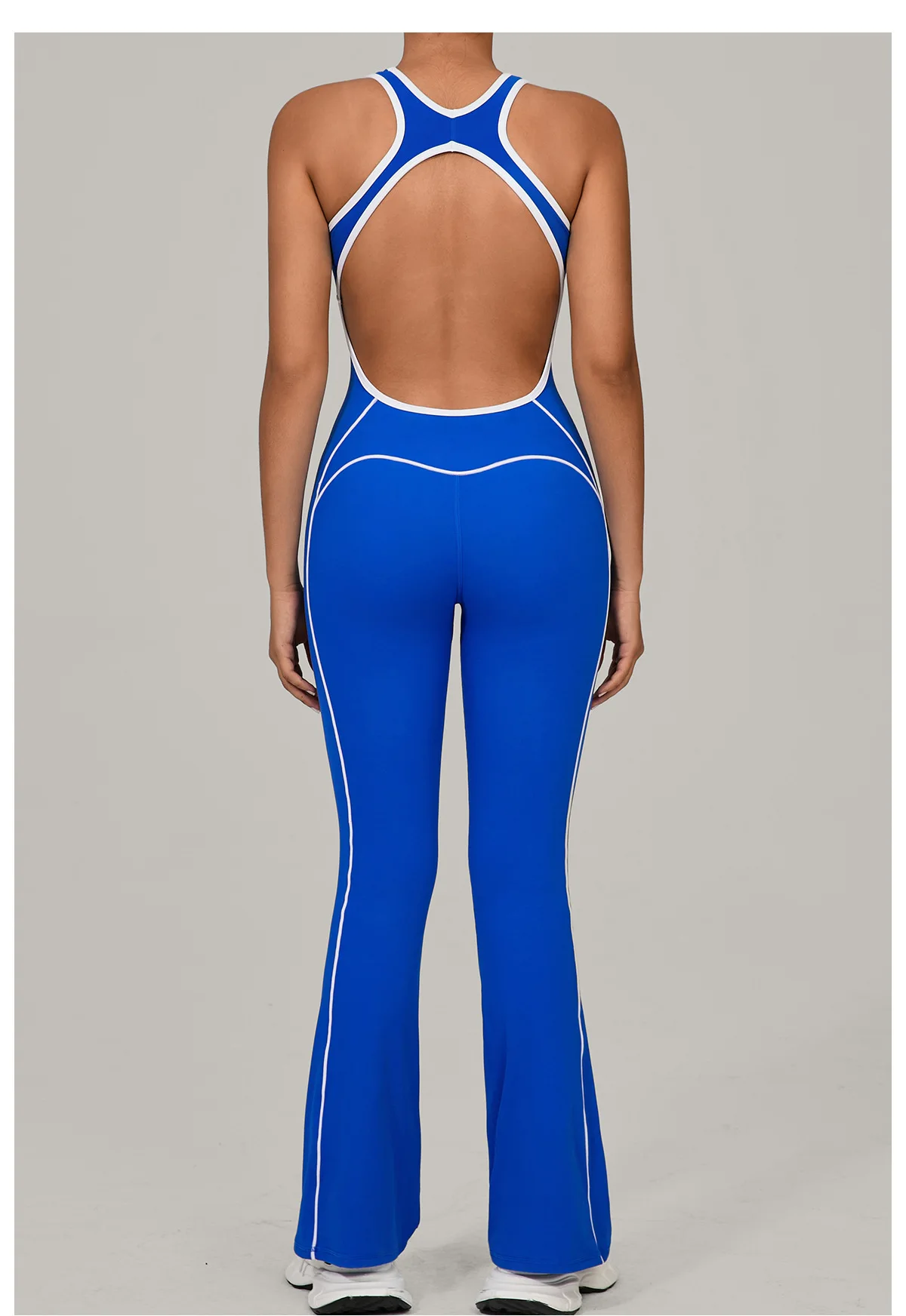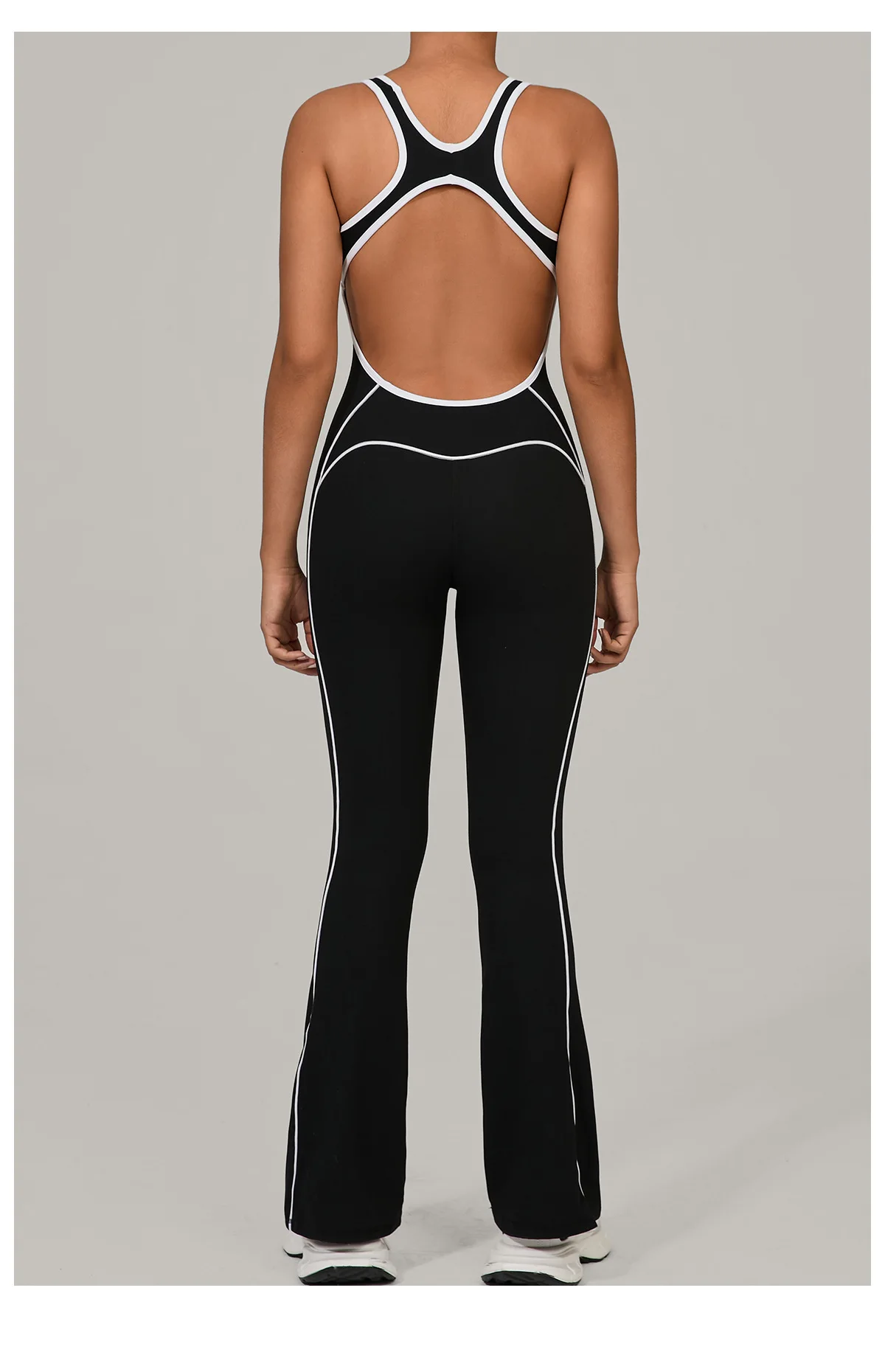 The LUMA Flow Open Back Pantalone Jumpsuit is a sleeveless one-piece designed with a wide-leg silhouette and an open back detail. Made from a nylon and spandex blend, it offers breathable comfort, gentle stretch and a regular, relaxed fit. Subtle patchwork elements add visual balance while maintaining a clean, modern aesthetic for everyday movement and lifestyle wear.