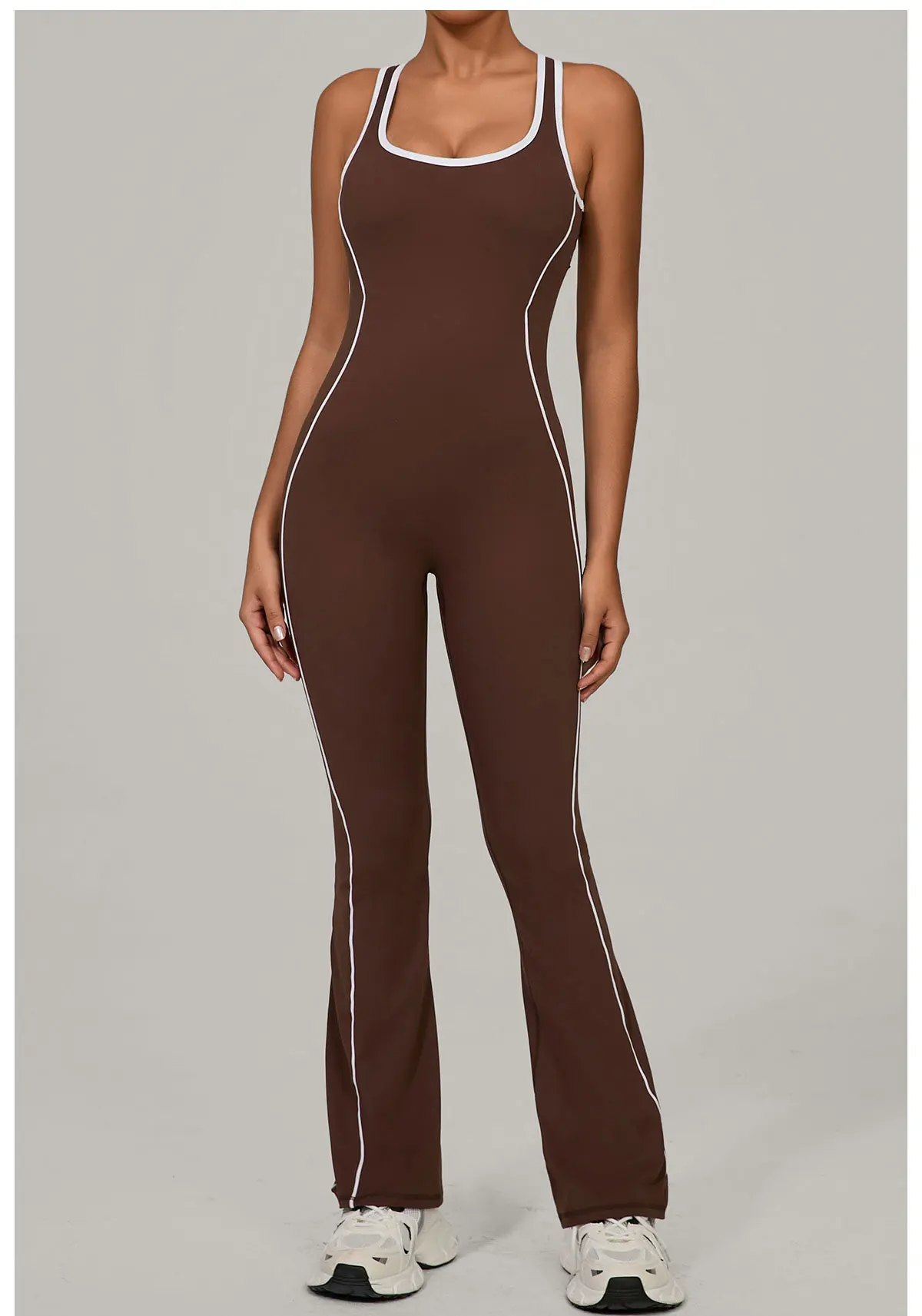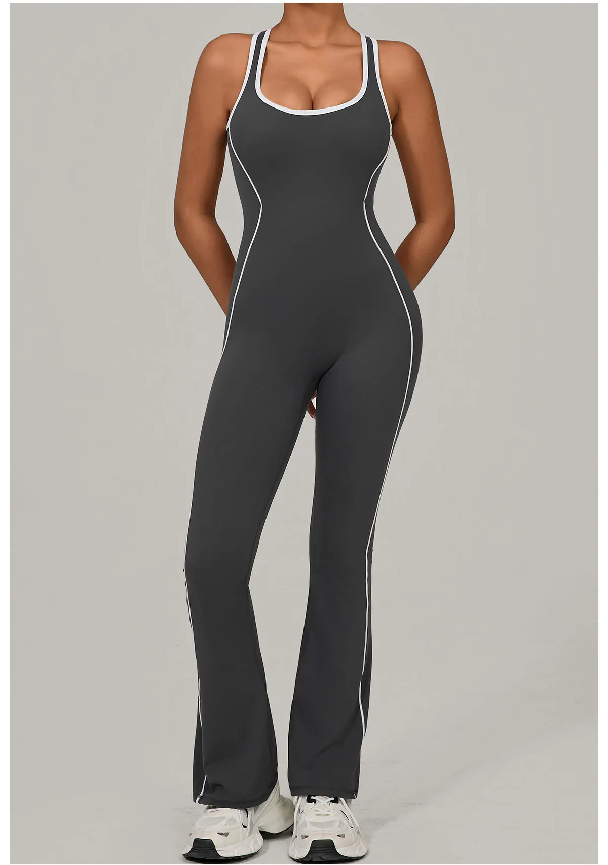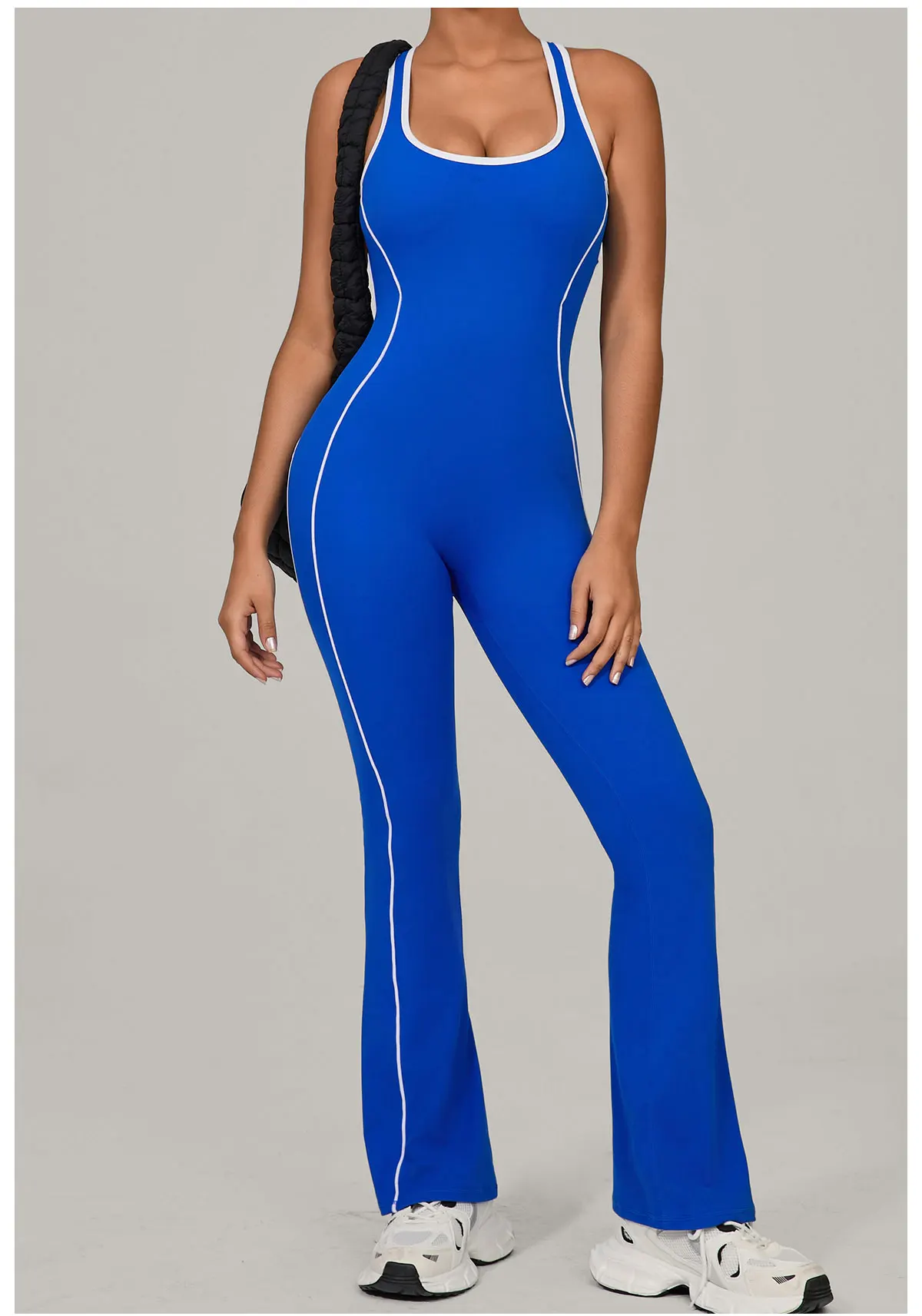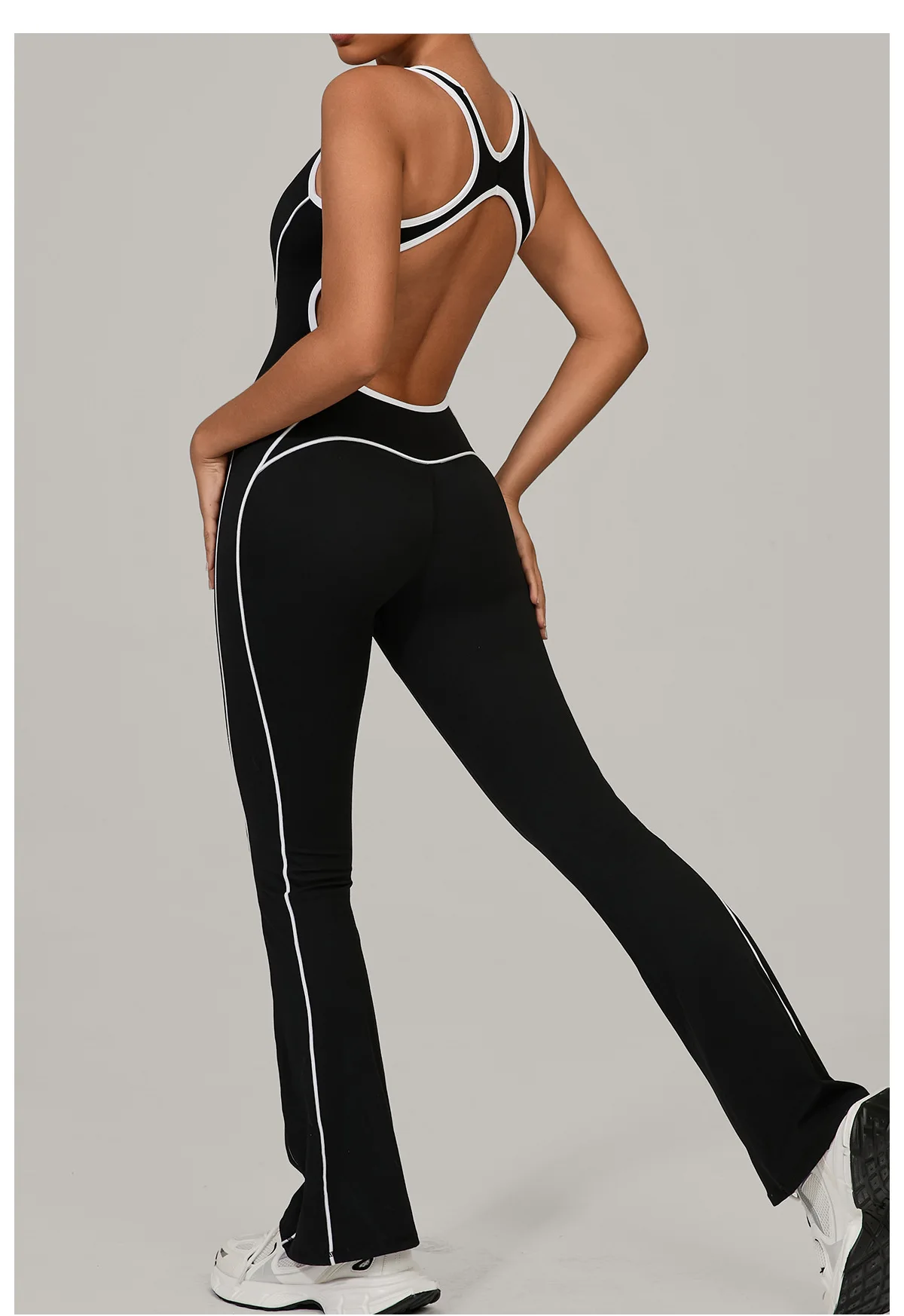 The LUMA Flow Open Back Pantalone Jumpsuit is a sleeveless one-piece designed with a wide-leg silhouette and an open back detail. Made from a nylon and spandex blend, it offers breathable comfort, gentle stretch and a regular, relaxed fit. Subtle patchwork elements add visual balance while maintaining a clean, modern aesthetic for everyday movement and lifestyle wear.